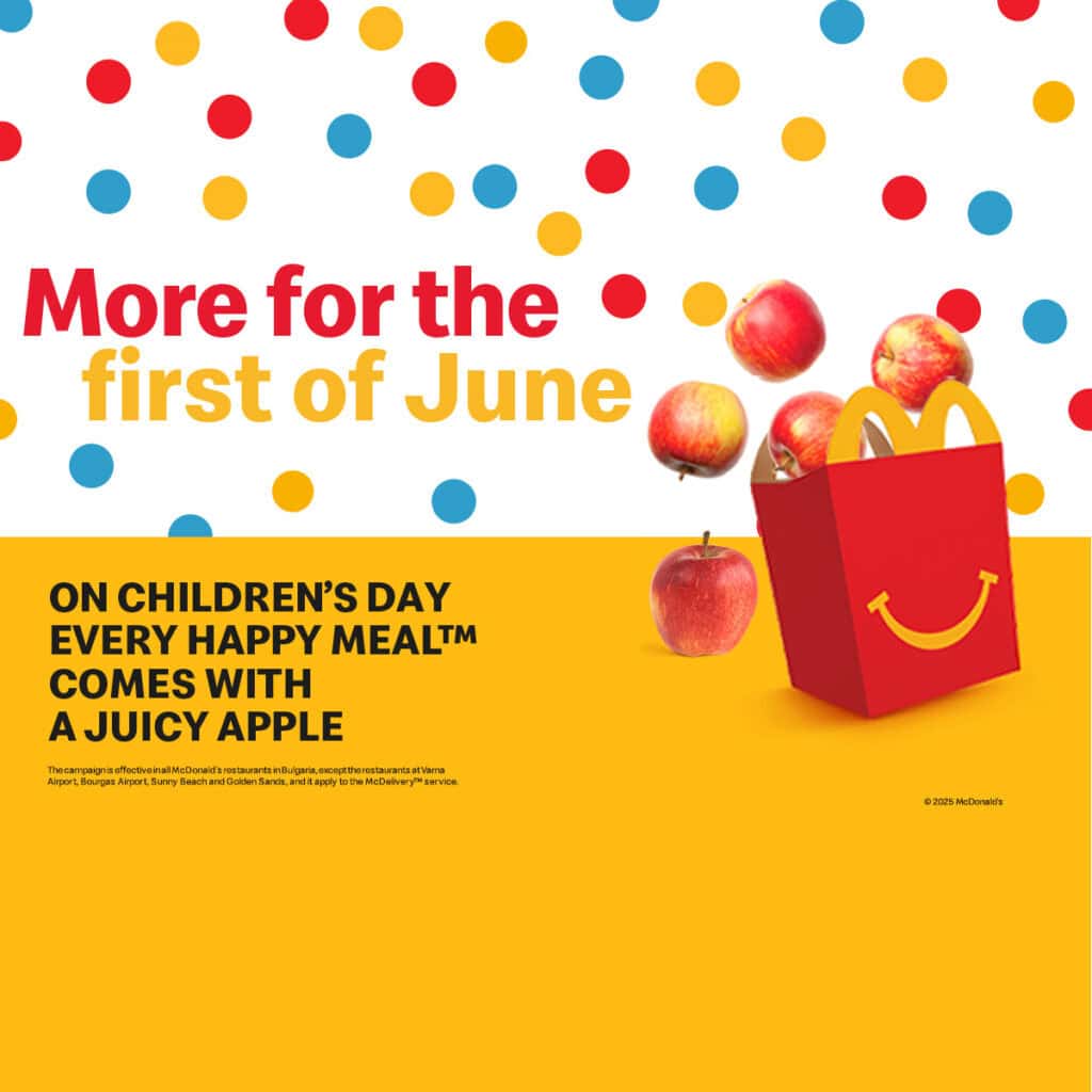*The campaign is effective in all McDonald’s restaurants in Bulgaria, except the restaurants at Varna Airport, Bourgas Airport, Sunny Beach and Golden Sands, and it apply to the McDelivery™ service.*