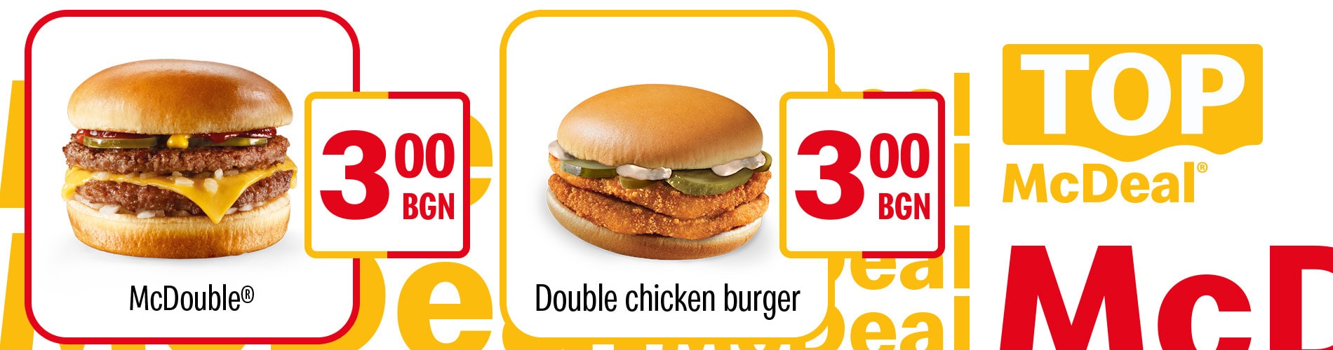 Now with our Top McDeal offer you can grab your favorite Double Chickenburger or the legendary McDouble™ for 3 lv.!